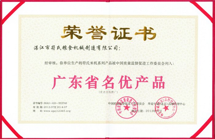 3  2013年被授予“符氏米機(jī)系列產(chǎn)品被中國質(zhì)量監(jiān)督促進(jìn)工作委員會列入:廣東省名優(yōu)產(chǎn)品”榮譽(yù)證書