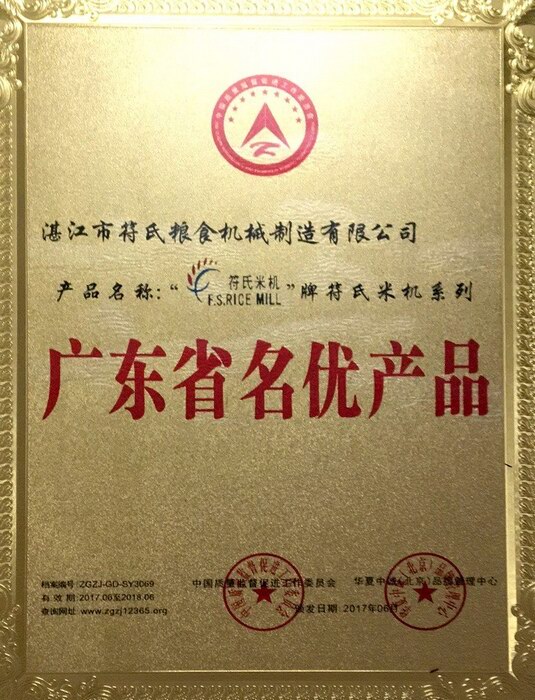 1  2017年產(chǎn)品名稱符氏米機(jī)F.S. RICE MILL符氏米機(jī)牌系列被授予“廣東省名優(yōu)產(chǎn)品”榮譽(yù)牌匾