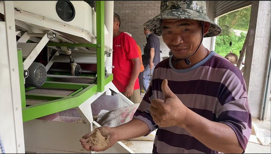 很多小型的磨米廠都有幾十年的歷史,一間小屋,一個守業(yè)人,村民隨時來,隨時開機,電閘一合上,轟隆的機聲響,幾分鐘,就可以把谷子變成白米。來賓忻城新村磨米廠特別好生意,因為米廠在2024年12月花了14萬元,更新?lián)Q代了一批機器,新的設備,比老式機占的空間小,方便搬運更具人性化,生產車間干凈整潔,不像舊式機械有較厚的糠塵。老板說,這是環(huán)保型磨米生產線,現(xiàn)在用的磨米機,除了傳統(tǒng)的除雜、去砂、磨白、去皮、粉碎谷殼,這幾個環(huán)節(jié)。還加強了除塵,加上新進了符氏色選機,只見大米經過升級版的除塵后米糠除得特別干凈,再進入最后一步色選機,通過光電檢測技術,利用材料本身的色差來識別和分離大米中的異色顆粒,從而達到提升大米品質、去除雜質的效果,除雜后的米粒晶瑩圓凈。
